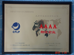 2010年1月22日,我公司榮獲中國物流與采購聯(lián)合會審定的“AAAA級綜合服務(wù)型物流企業(yè)”資質(zhì)。