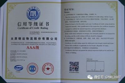 2018年12月3日,經315全國征信系統誠信企業(yè)認證評審,我公司被評為AAA級信用單位,并頒發(fā)AAA級信用等級證書。
